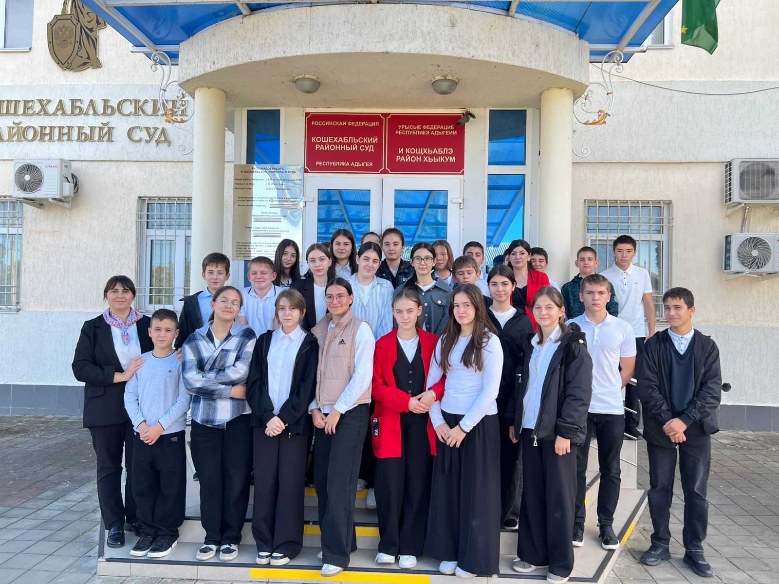 Школьники на экскурсии в суде. В рамках исполнения плана деятельности Кошехабльского районного суда на II полугодие 2025 года и в целях повышение юридической грамотности и правового воспитания несовершеннолетних, формирования позитивного отношения к российской судебной системе, уважительного отношения к закону, сегодня Кошехабльский районный суд посетили ученики 7 класса МБОУ СОШ №2. Помощник судьи Аида Анатольевна Шишева рассказала школьникам о работе суда, начиная с контрольно-пропускного пункта входа в здание
